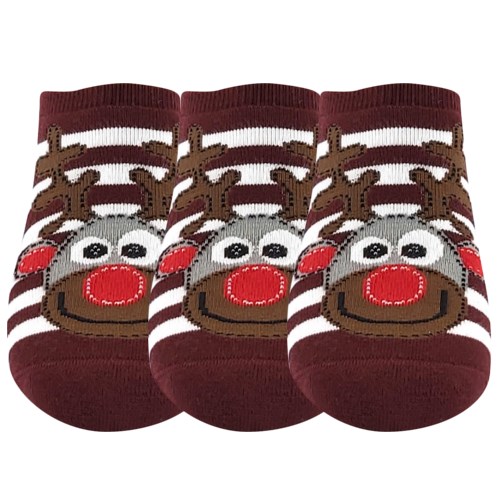Domácí jemné froté ponožky Lonka® CUPID ABS jsou měkké a hřejivé v extra nízké výšce pod kotník. Silné froté ponožky mají vysoký podíl bavlny, jsou tak velmi příjemné na omak a výborně sají pot. Špice je sešitá jemným řetízkováním, spoj je tak hladký. Pruhovaný design zdobí "vánoční" motiv sobíka. Ponožky se dají nosit místo bačkor!