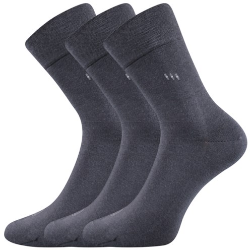 Pánské společenské ponožky Lonka® DIPOOL mají extra volný nestahující lem, vhodný i pro oteklé nohy. Oblekové ponožky mají velmi decentní kotníkový vzor.
