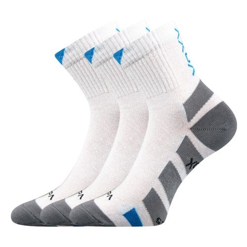 Bavlněné ponožky s ionty stříbra, které působí antibakteriálně a značně omezuje tvorbu bakterií a plísní. Bakterie jsou stříbrem přirozeně zničeny a nedochází pak k tvorbě zápachu. Sportovní ponožky jsou s elastickou bandáží na nártu, zabraňující přetočení v obuvi. Ponožky jsou prodyšné, volný lem nohu nestahuje. Ponožky v teplotní třídě A jsou vhodné do rozmezí teplot od +10°C do +35°C, můžete nosit klidně po celý den.